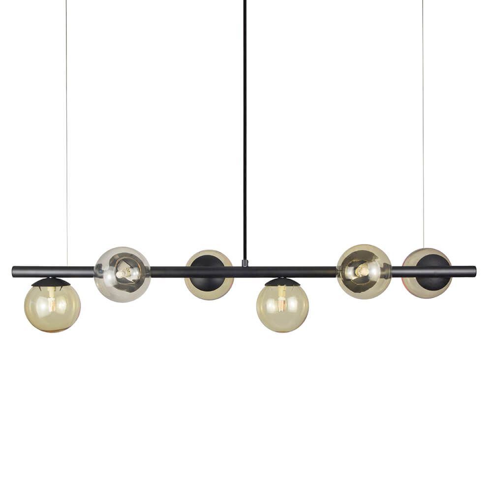 Lustre Pendente Figo PRETO - 6 Globos Esfera de Vidro Âmbar