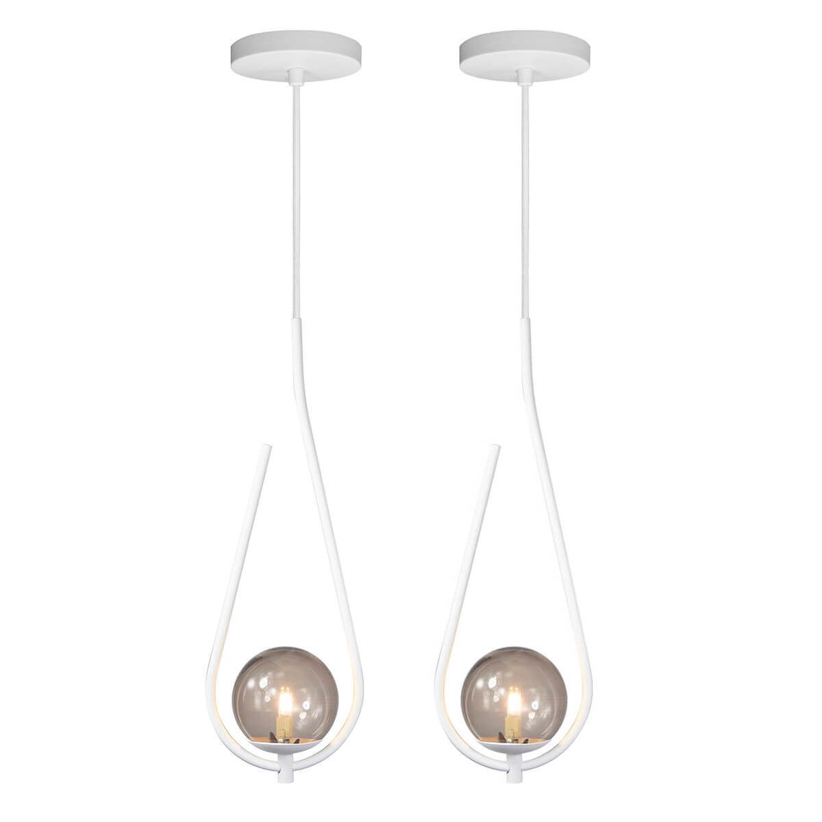 Kit 2 Pendentes Lustre On Drop BRANCO globo de vidro FUMÊ