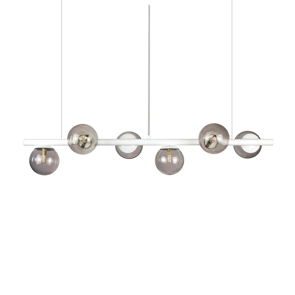 Lustre Pendente Figo BRANCO - 6 Globos Esfera de Vidro Fume