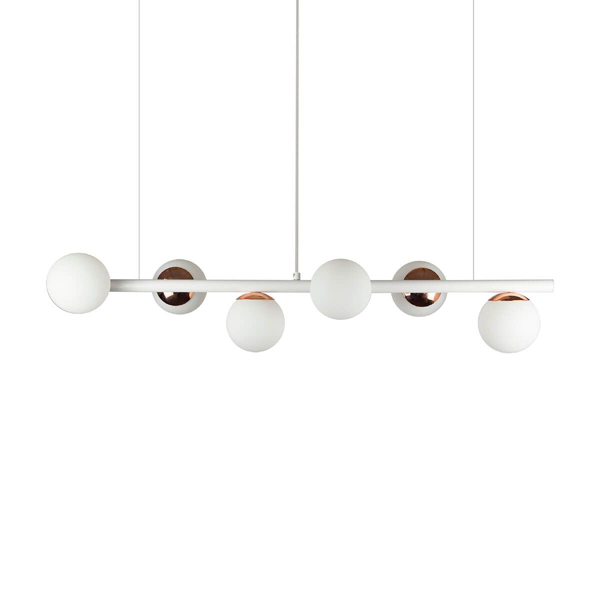 Lustre Pendente Figo BRANCO / COBRE - 6 Globos Esfera de Vidro Branco