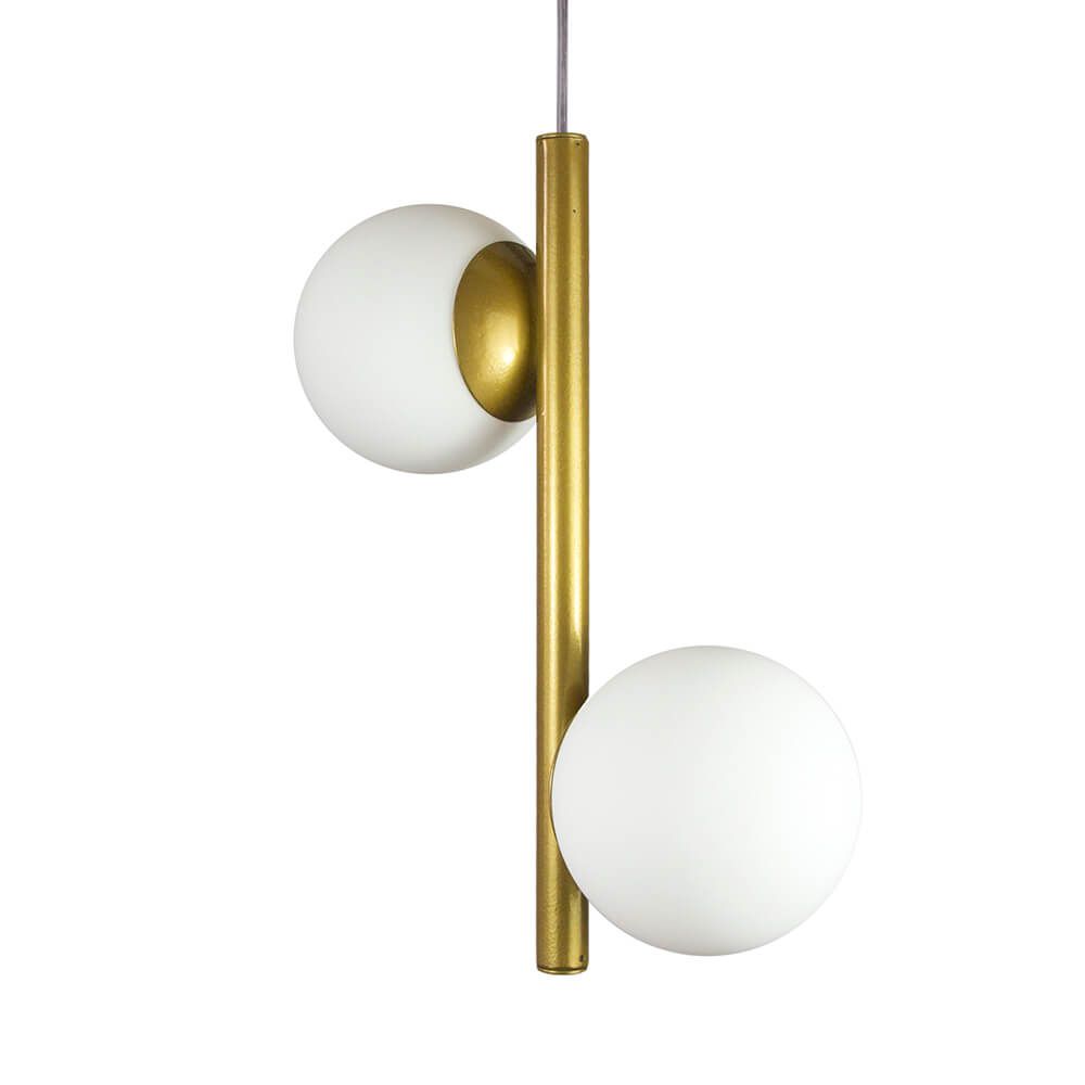 Lustre Pendente Figo com 2 Globos Esfera de Vidro - Ouro
