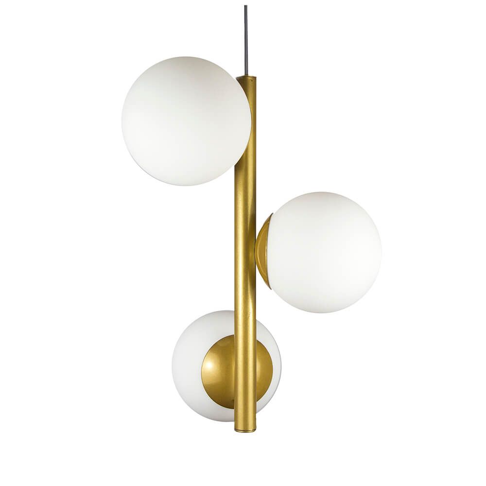 Lustre Pendente Figo com 3 Globos Esfera de Vidro - Ouro