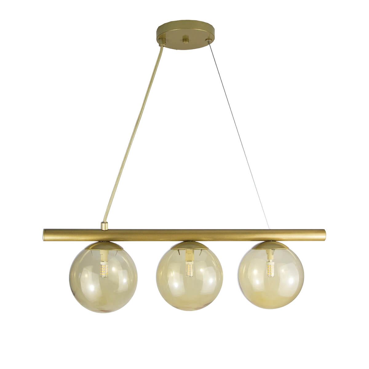 Lustre Pendente Figo OURO - 3 Globos Esfera de Vidro Âmbar