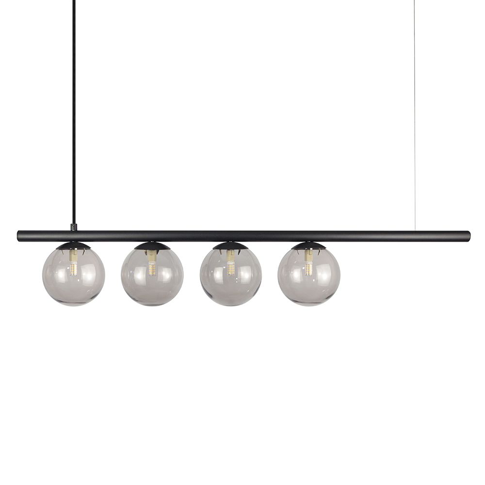 Lustre Pendente Figo PRETO - 4 Globos Esfera de Vidro Fumê