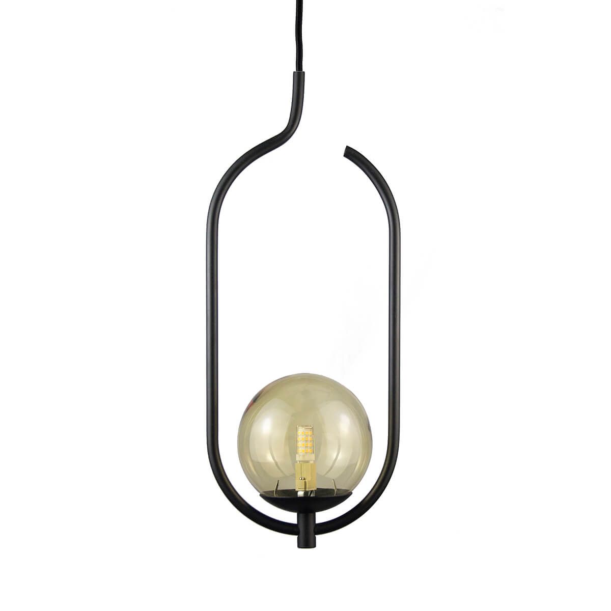 Lustre Pendente ON CLIP - PRETO com globo de vidro âmbar
