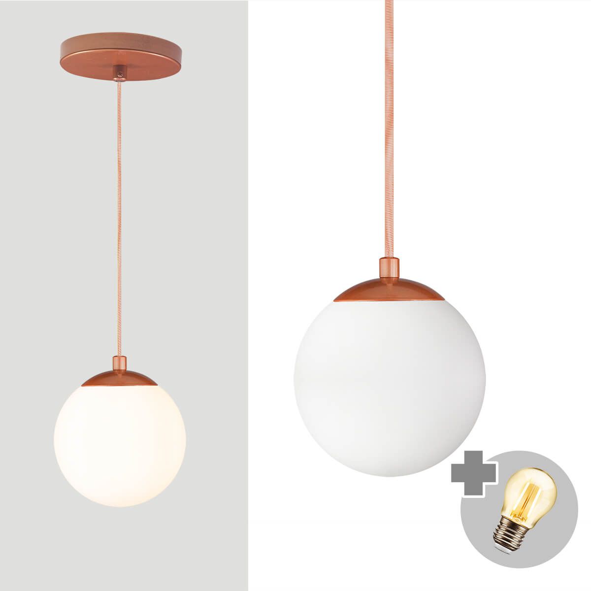 Pendente BRONZE C/ Globo de Vidro BRANCO de 14cm + LED 2W